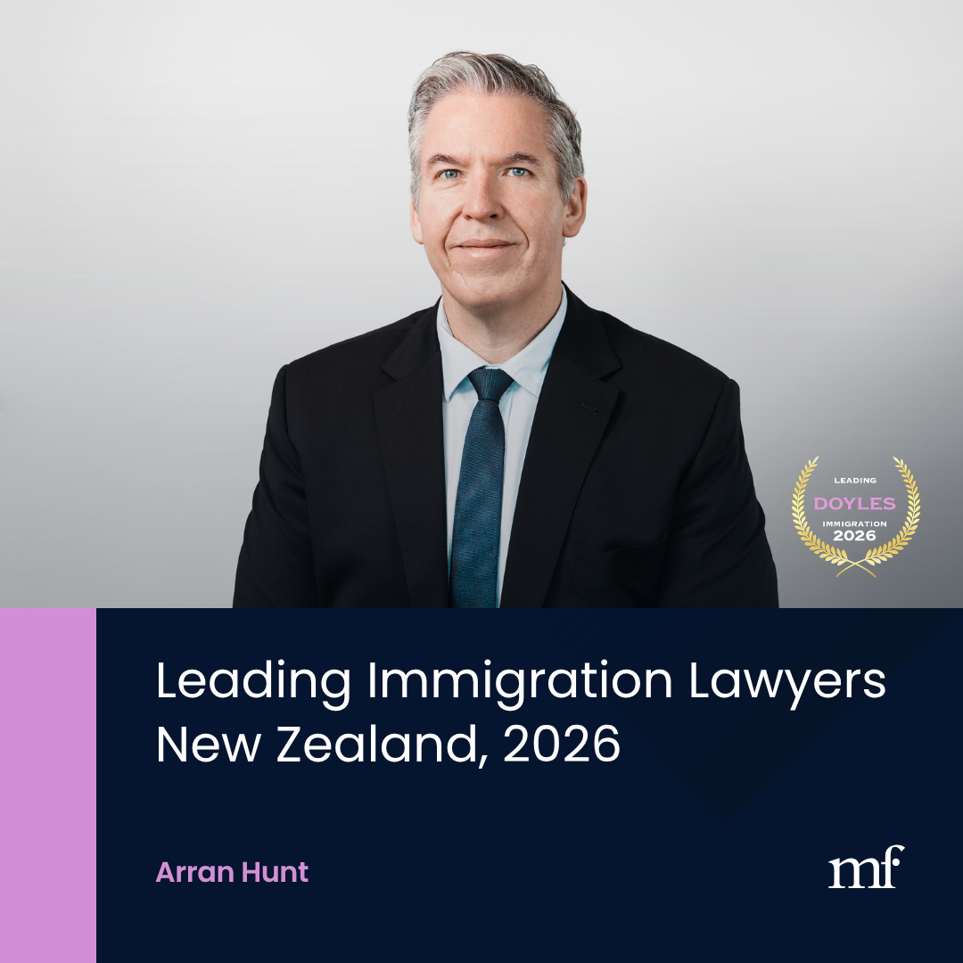 Arran Hunt has been recognised in the Doyle’s Guide 2026 as a Leading Immigration Lawyer in New Zealand. This recognition reflects the strength of our Immigration team and Arran’s practical advice to clients who are navigating complex immigration and visa matters.